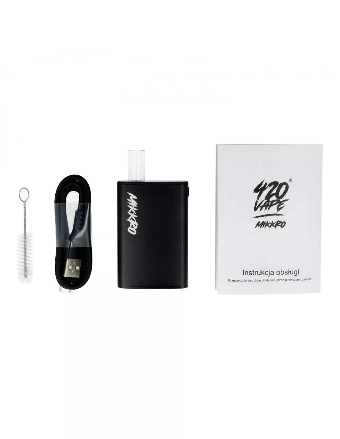 MIKKRO to waporyzator, który czerpie inspirację z Arizera SOLO 2 i Fenixa Mini.  Solo 2, dzięki zastosowaniu systemu szklanych rurek, od lat zachwyca doskonałym smakiem pary, a Fenix doceniany jest za kompaktowe wymiary.  MIKKRO by 420VAPE jest mniejszy niż Fenix Mini – mierzy zaledwie 7 cm wysokości i 2 cm szerokości, a do tego posiada szklany ustnik, do którego bezpośrednio aplikujesz susz, a nie do komory grzewczej jak ma to miejsce w innych waporyzatorach. Twój susz dotyka prawie wyłącznie szklanego ustnika (bezpośredni kontakt z komorą grzewczą jest minimalny), dzięki czemu zyskujesz doskonały smak pary, który dotychczas zarezerwowany był dla waporyzatorów ze znacznie wyższej półki cenowej.
